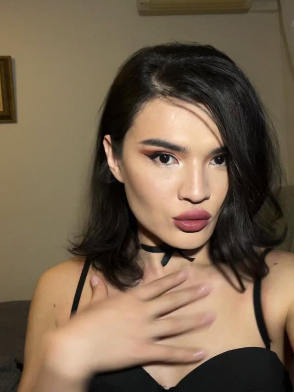 - Волосы: Брюнетка